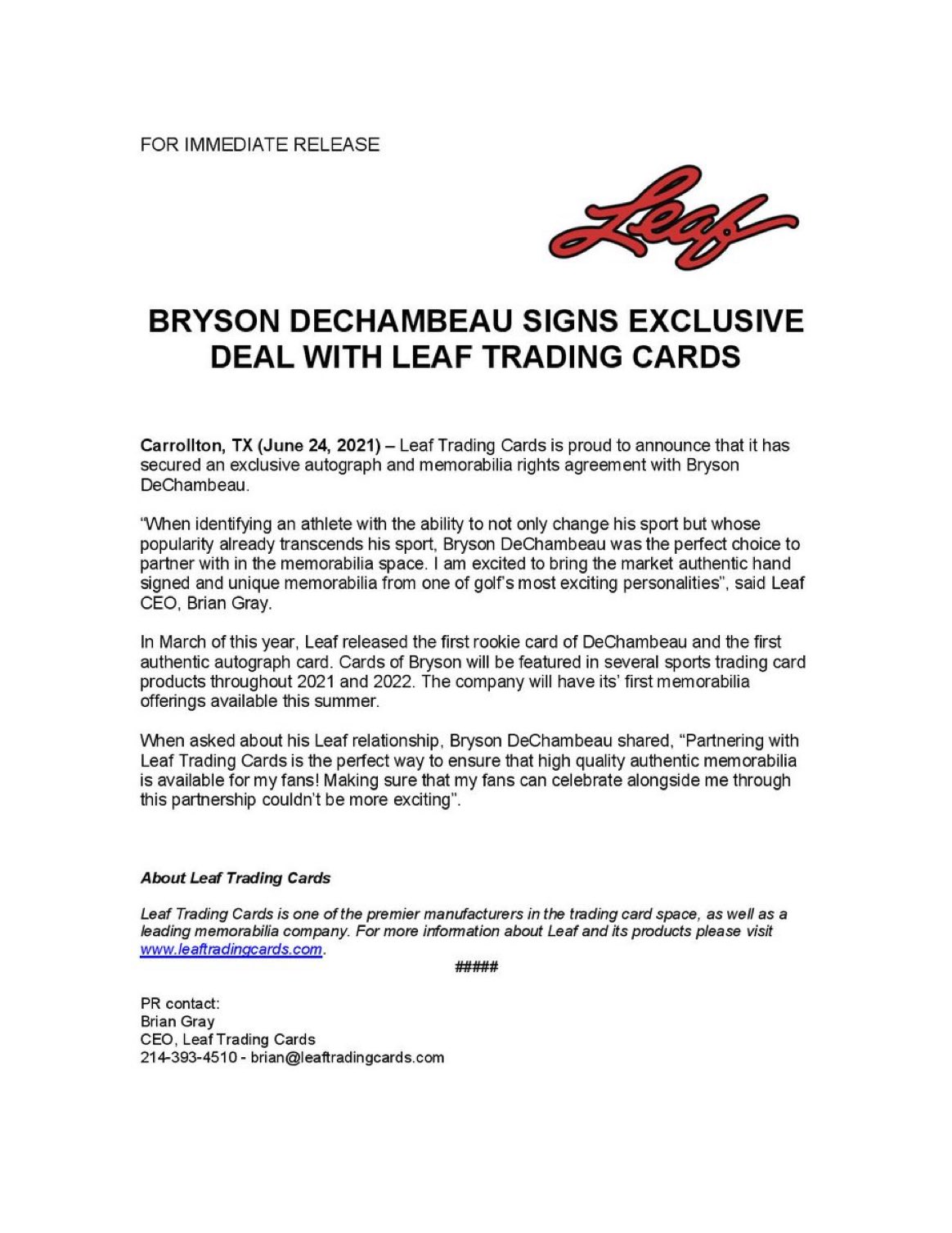 Leaf Trading Cards On Twitter Leaf Signs Exclusive Deal With Bryson Dechambeau B Dechambeau Https T Co Twf2izmmnx Twitter